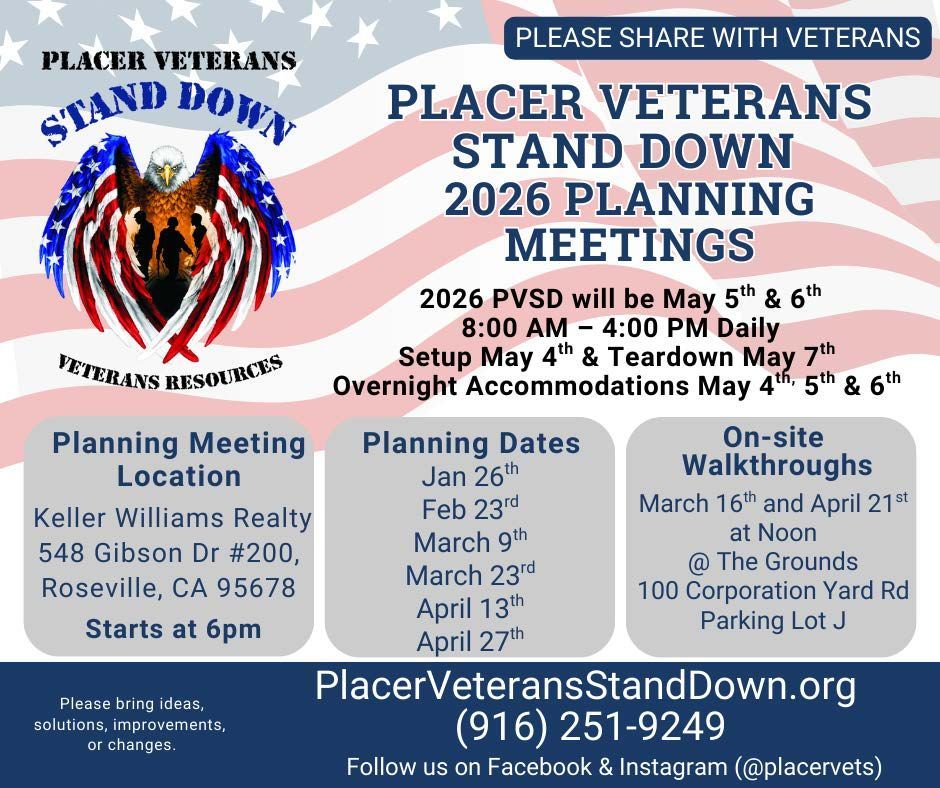 For the safety of all of participants, registered sex offenders will not be allowed to participate in the Placer Veterans Stand Down.